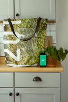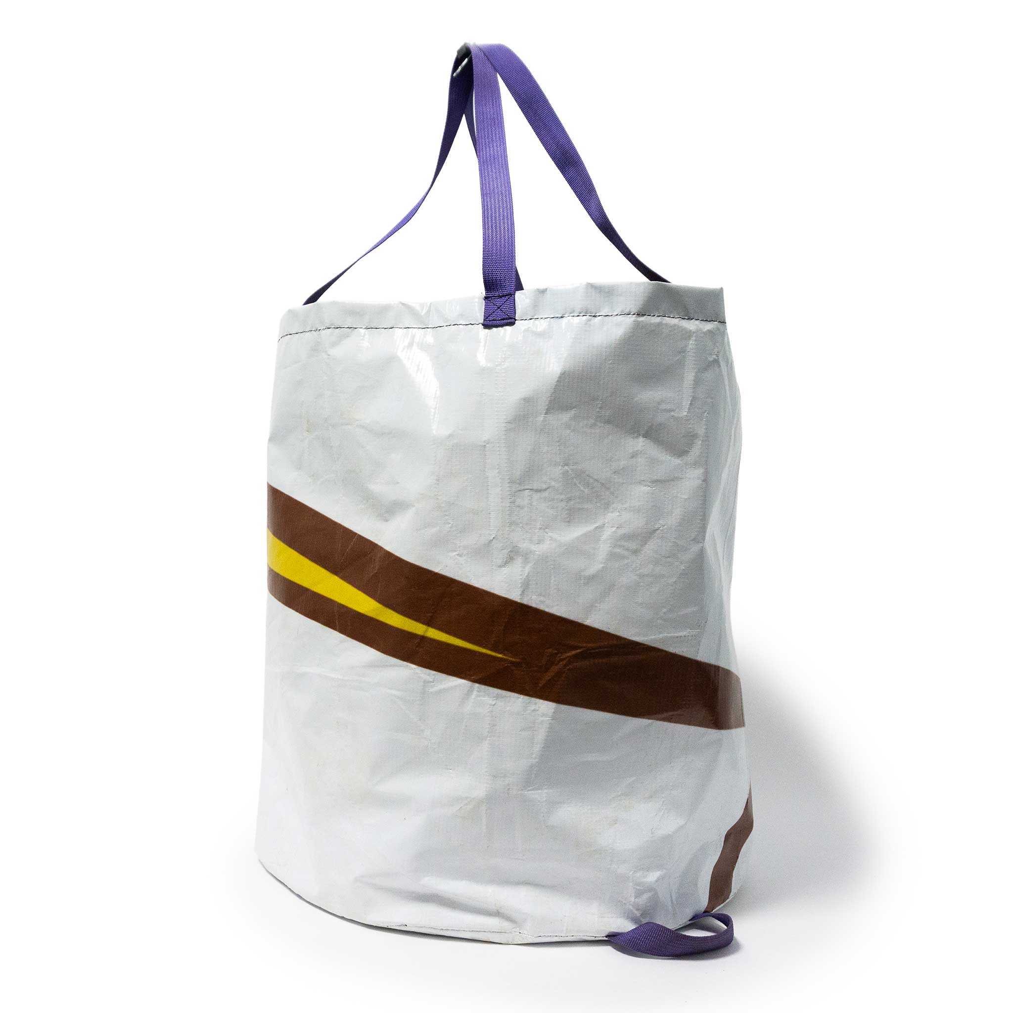 The Recycling Tote combines circular economy principles to help you recycle at home. Crafted from upcycled billboards, each tote shows off a one-of-a-kind design. Equipped with easy grab handles and a unique bottom third handle that eases the movement of materials from inside your home to an outdoor cart, bin, or compactor. It can fold down or be adjusted to fit into any space in your apartment, condo or home.