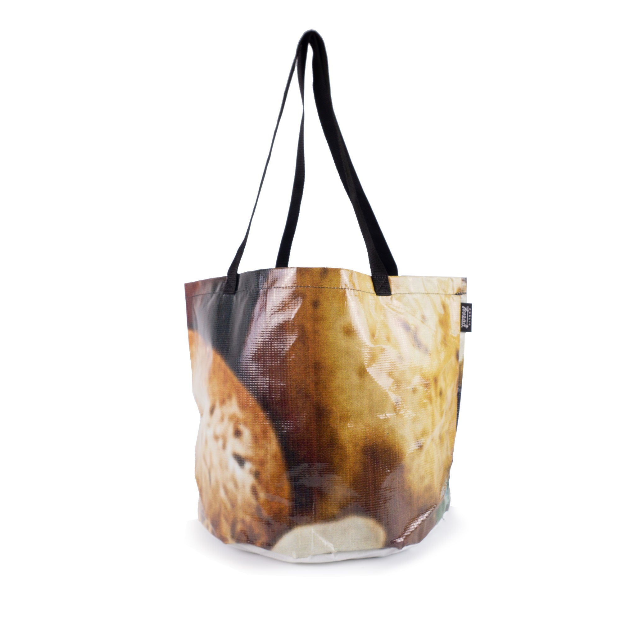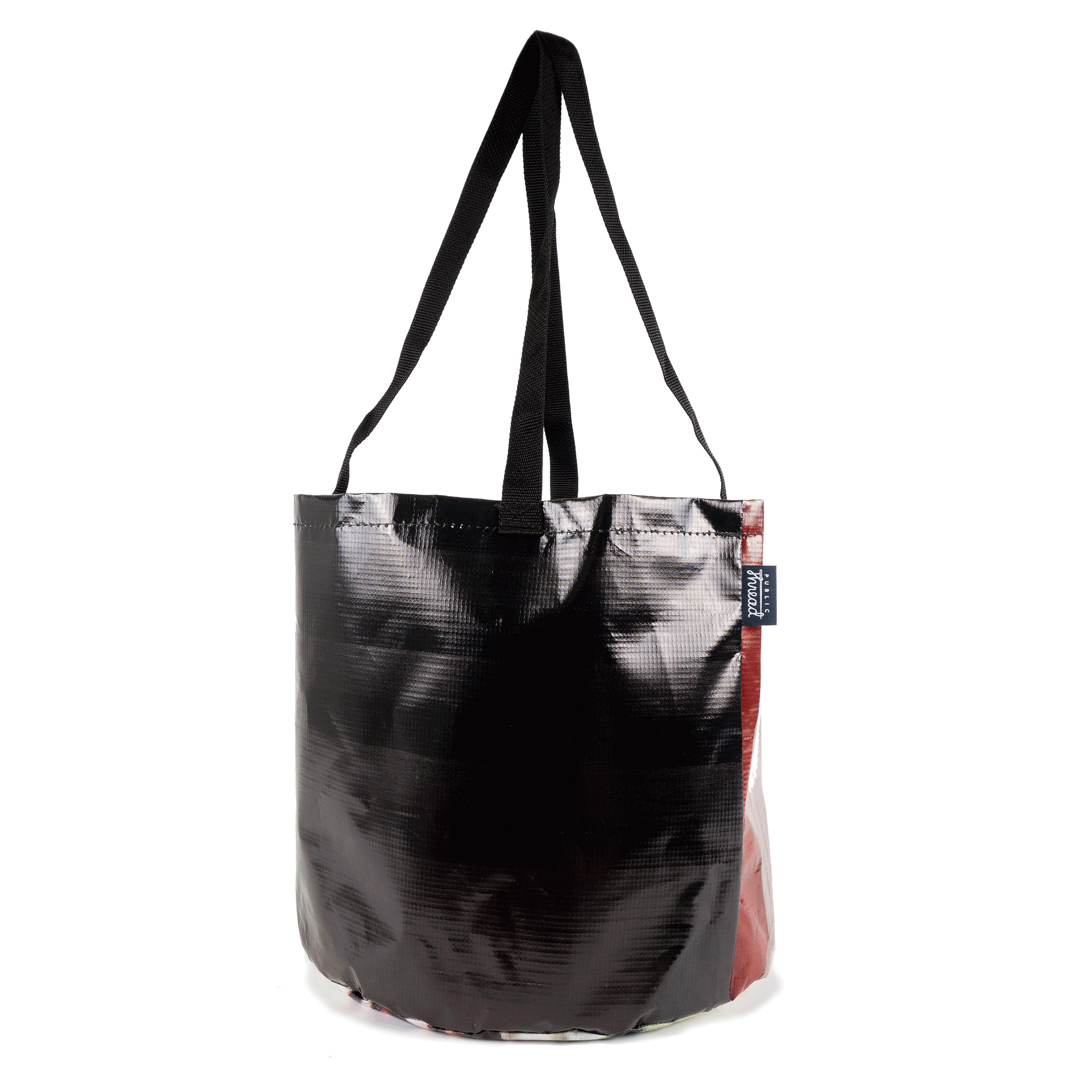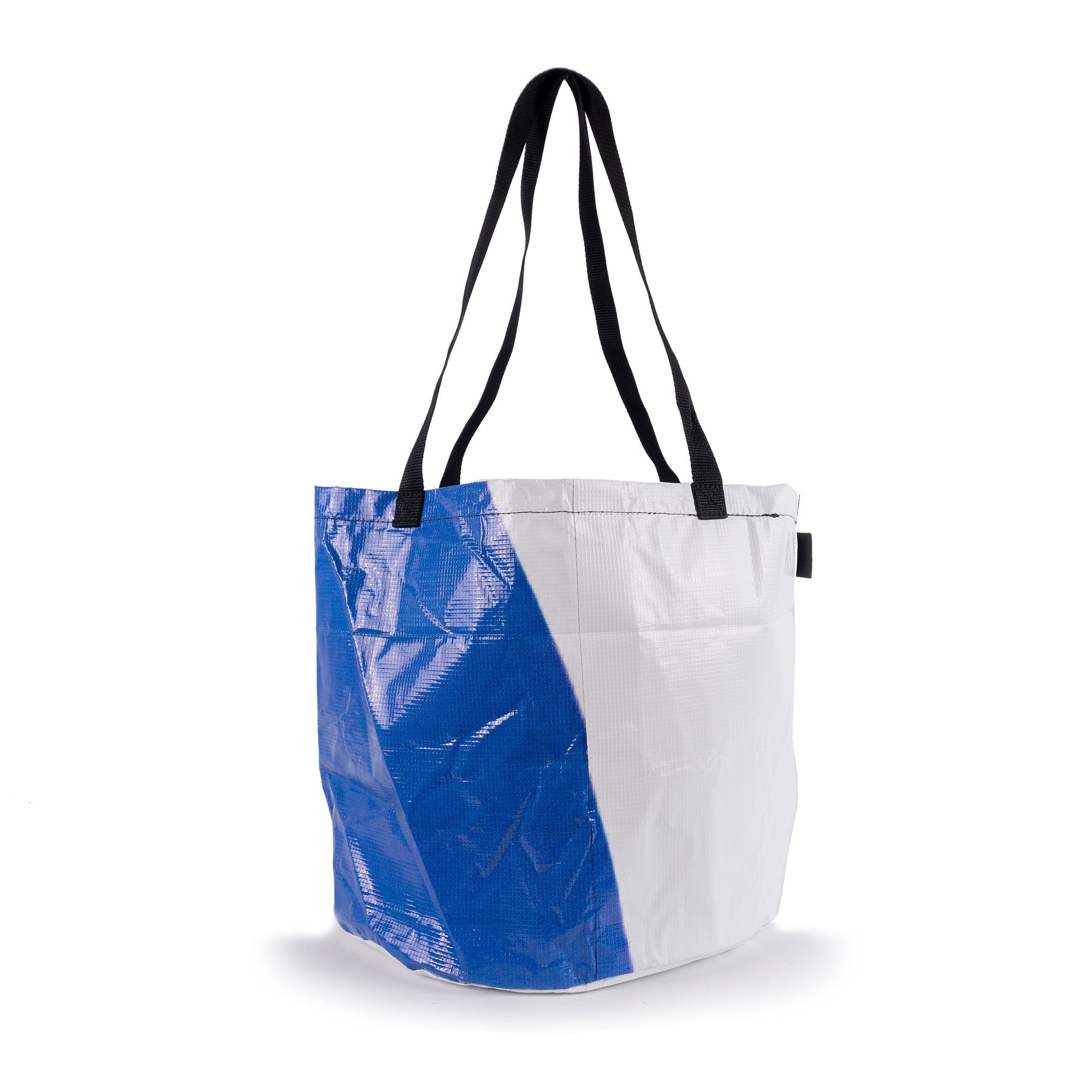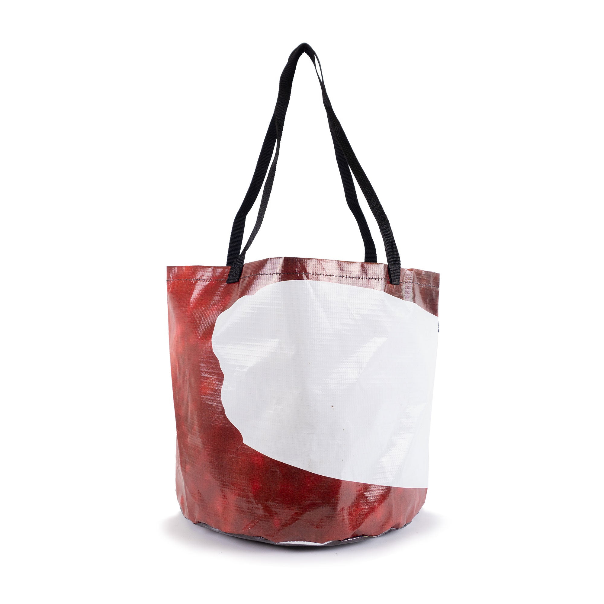 This Upcycled Billboard Tote Bag is an environmentally friendly and unique solution for carrying your belongings. With easy-to-clean interior and exterior surfaces, you can use this bag for anything from groceries to sports equipment. Plus, each bag is one-of-a-kind and waterproof for ultimate durability.