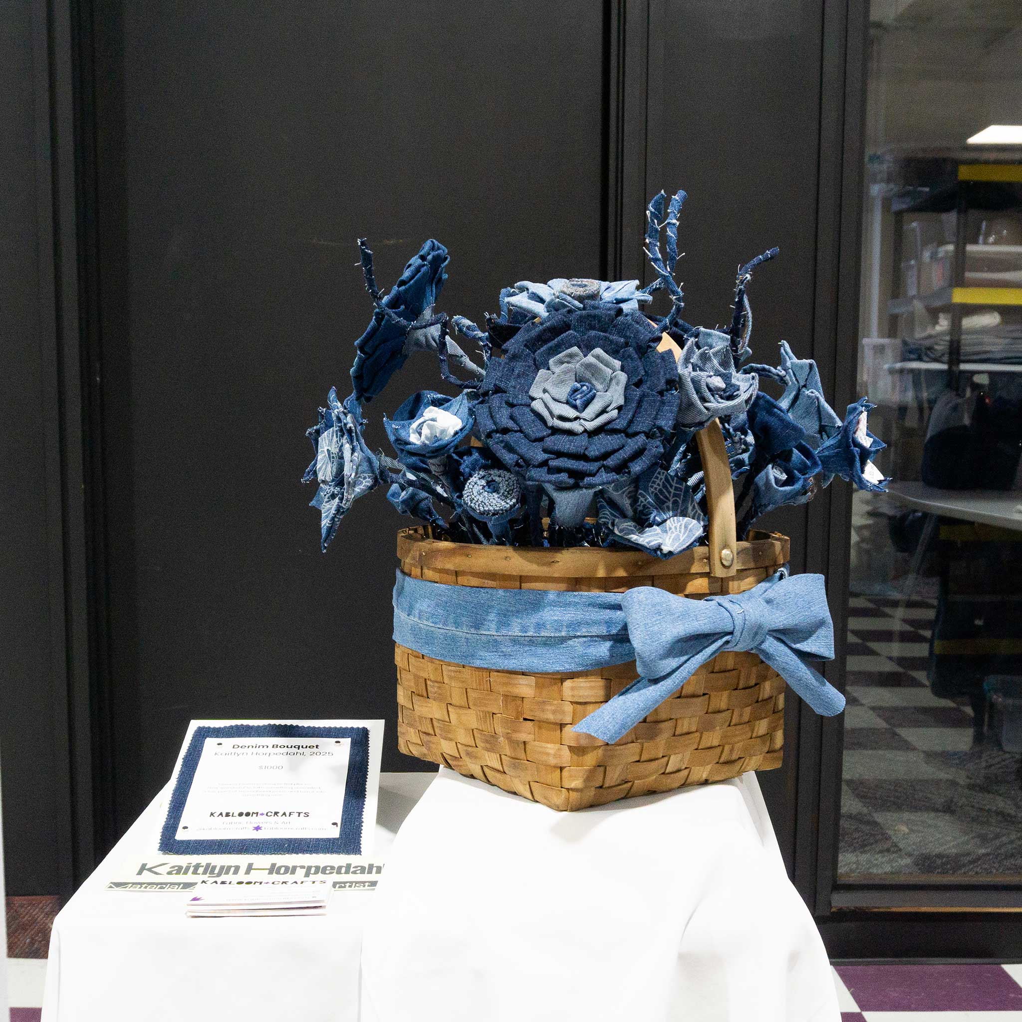Kaitlyn has created a special one of a kind large denim bouquet, creating a unique juxtaposition of nature, upcycled textiles, and fiber art.