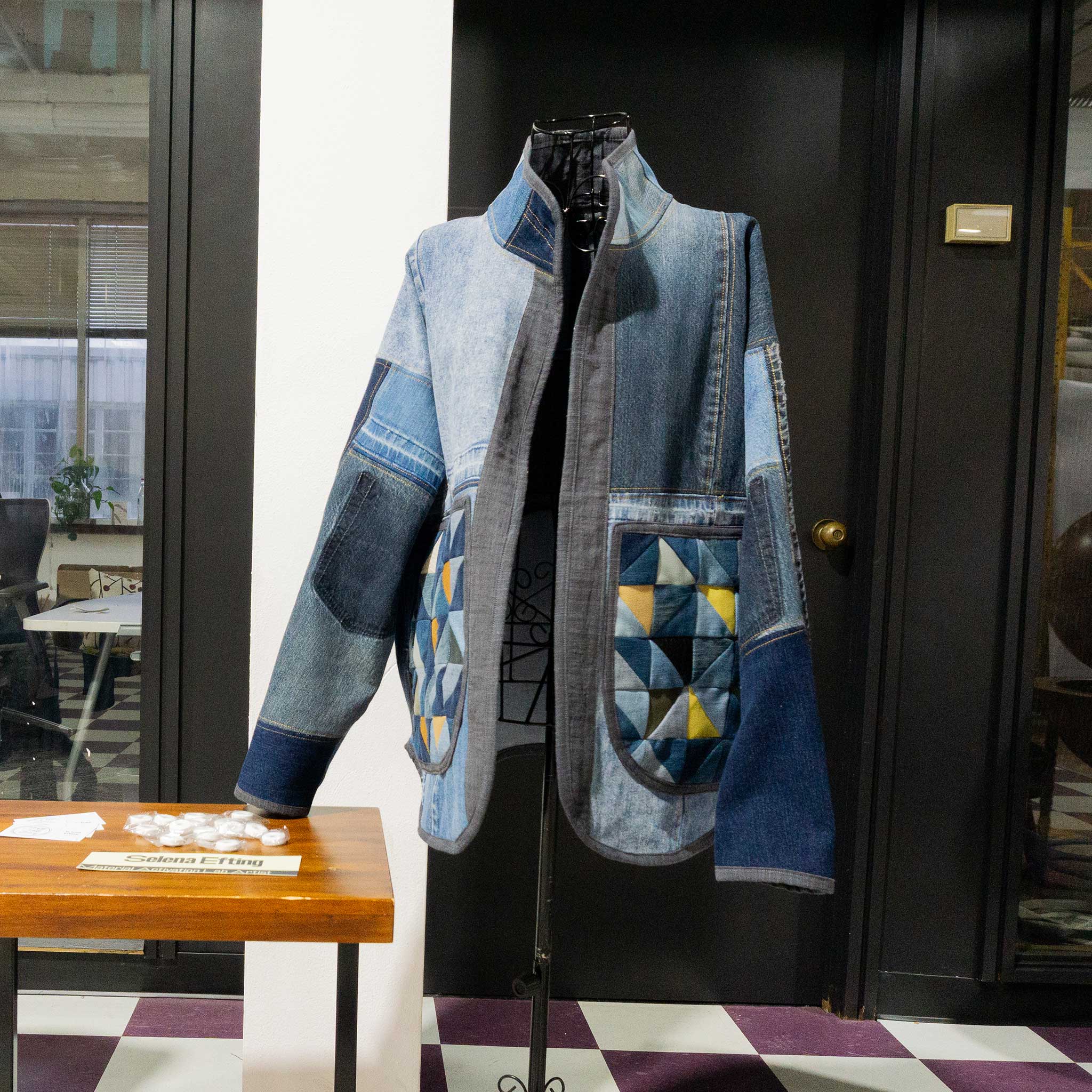 Selena crafted this beautiful jacket using upcycled denim and leather. Utilizing a combination of patchwork and quilting techniques to bring this one of a kind jacket to life.