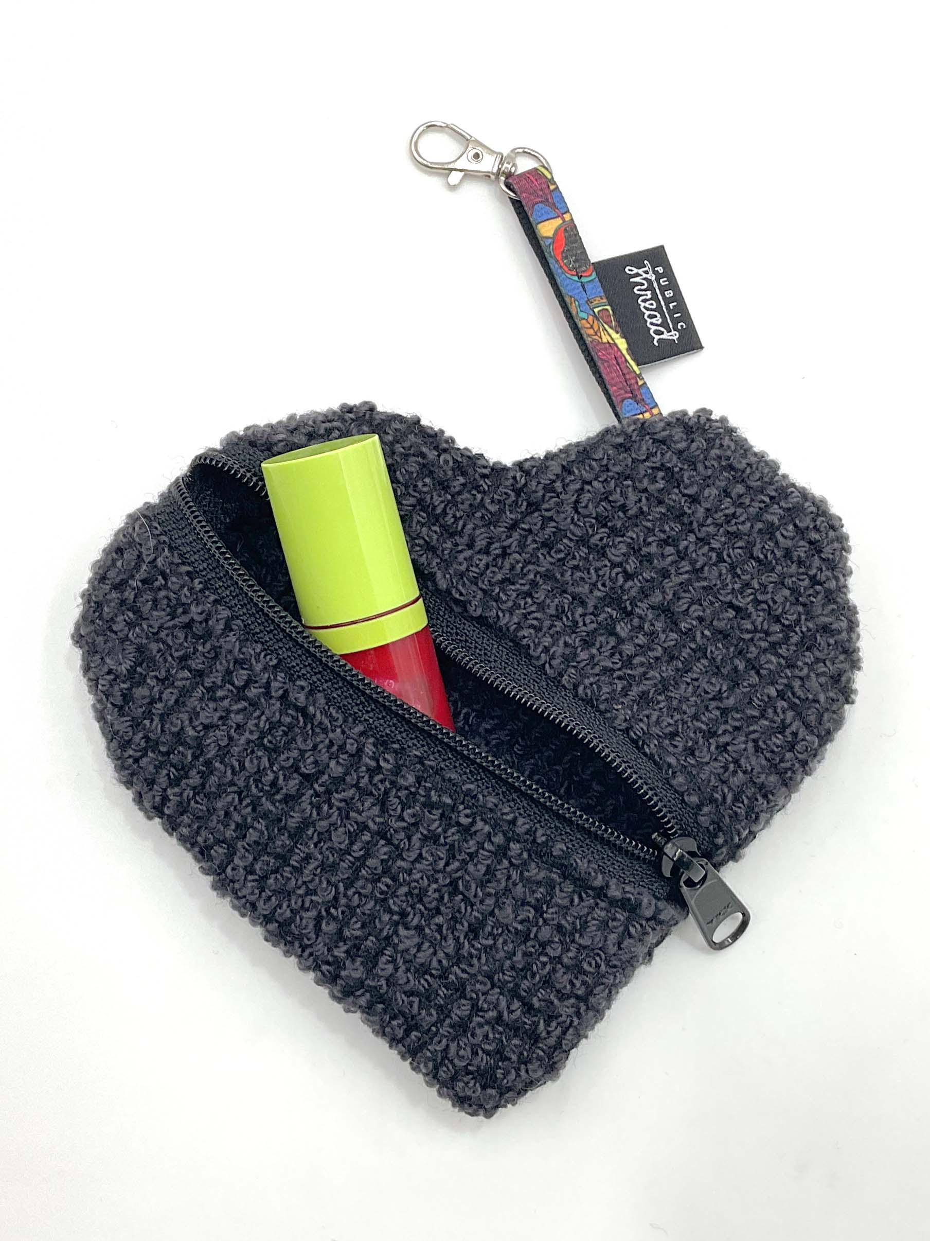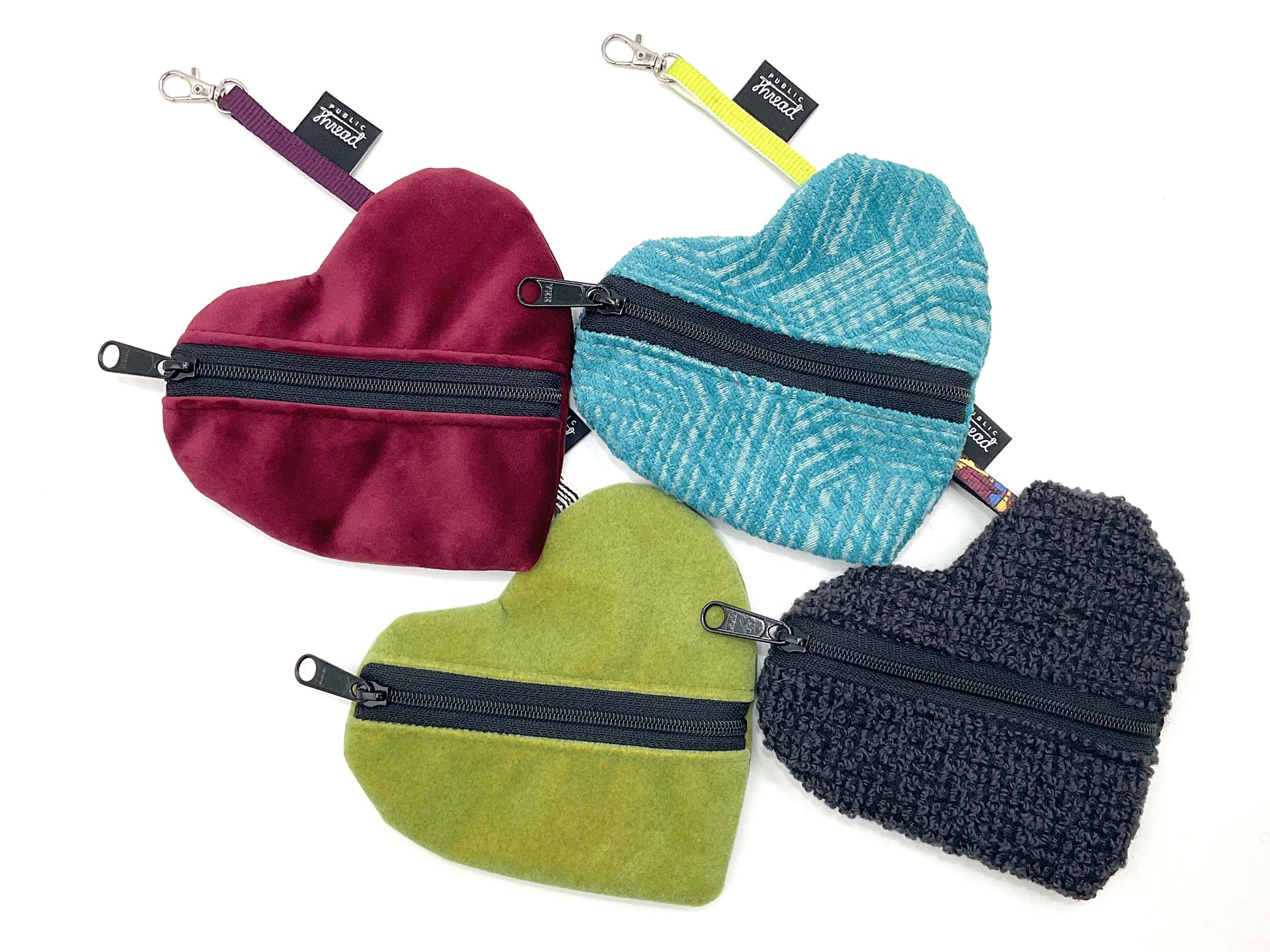 Add a stylish touch to any bag with our Heart Bag Charm. Designed to clip easily onto your purse, backpack, or tote, this charming accessory provides a convenient place to store small essentials like coins, lip balm, cards, cash, or anything else you need to keep handy. Crafted from upcycled upholstery fabrics, it brings a unique tactile element to your bag while offering a secure zippered compartment for easy access to your items.